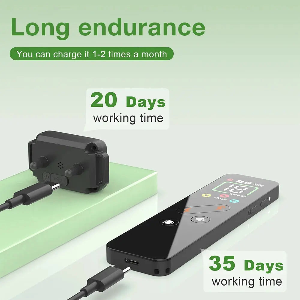 This collar comes equipped with a vibrant color screen on the remote control, making it incredibly easy to navigate through various settings. Unlike traditional collars with unclear indicators, the color screen displays information clearly, so you know exactly what setting you're using. This clarity is essential for effective training, as it helps remove confusion during the training sessions. Additionally, the remote control features a user-friendly layout, allowing for quick adjustments as your dog responds to the training.
