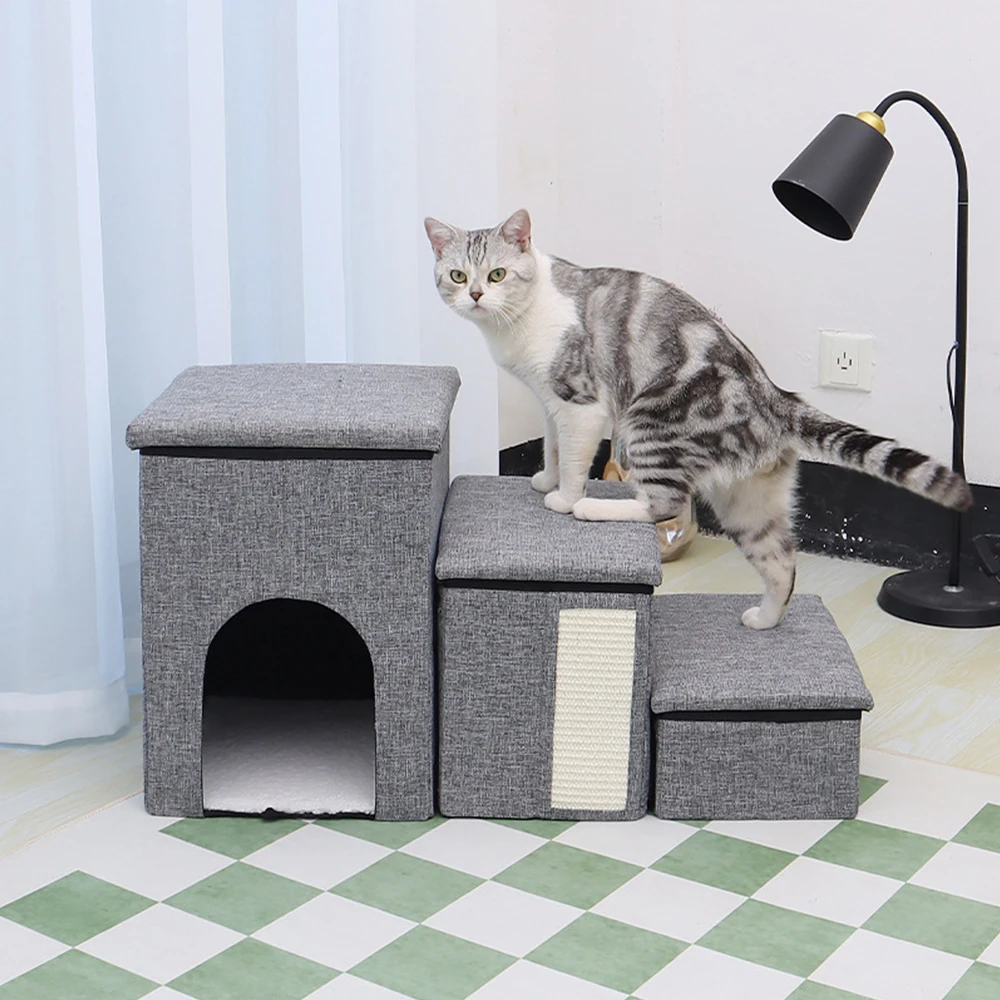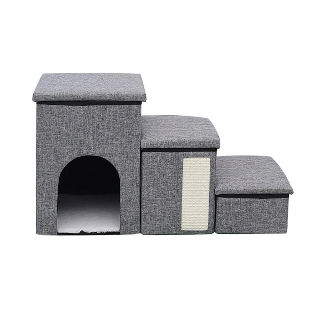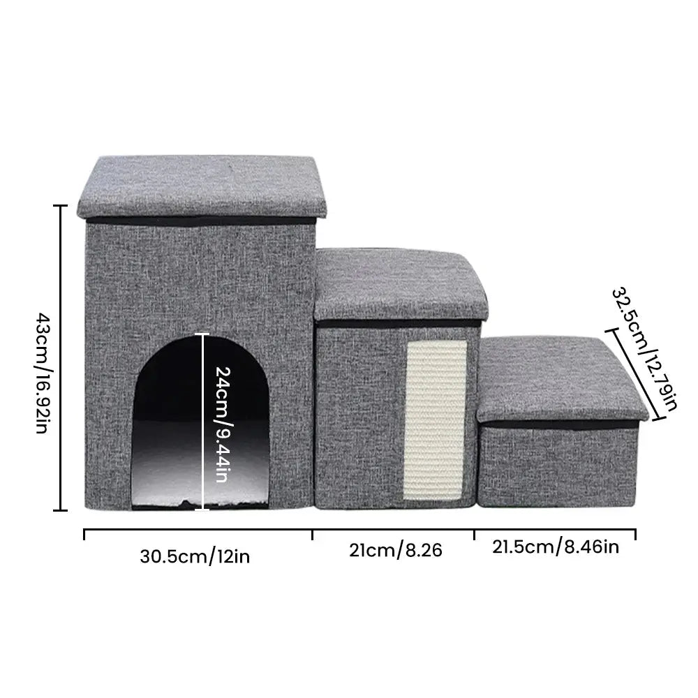 Multifunctional Pet Haven: Enjoy a organized space and a happy pet with our multifunctional pet staircase, featuring storage, climbing, resting, and playing options in stylish grey to suit your home decor.