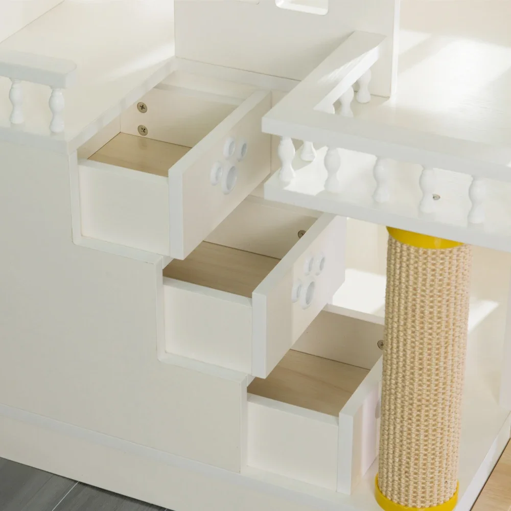 Not only does the luxury cat climbing frame provide entertainment and exercise for your cat, but it also helps reduce furniture damage caused by scratching. Because cats love to climb, having a designated space will divert their attention from your beloved furniture. The beautiful design and quality materials also make it a lovely centerpiece in any room, so it does not just serve a purpose for the cat but also enhances your interior. Therefore, opting for this luxury cat climbing frame is a win-win for both you and your furry companion.